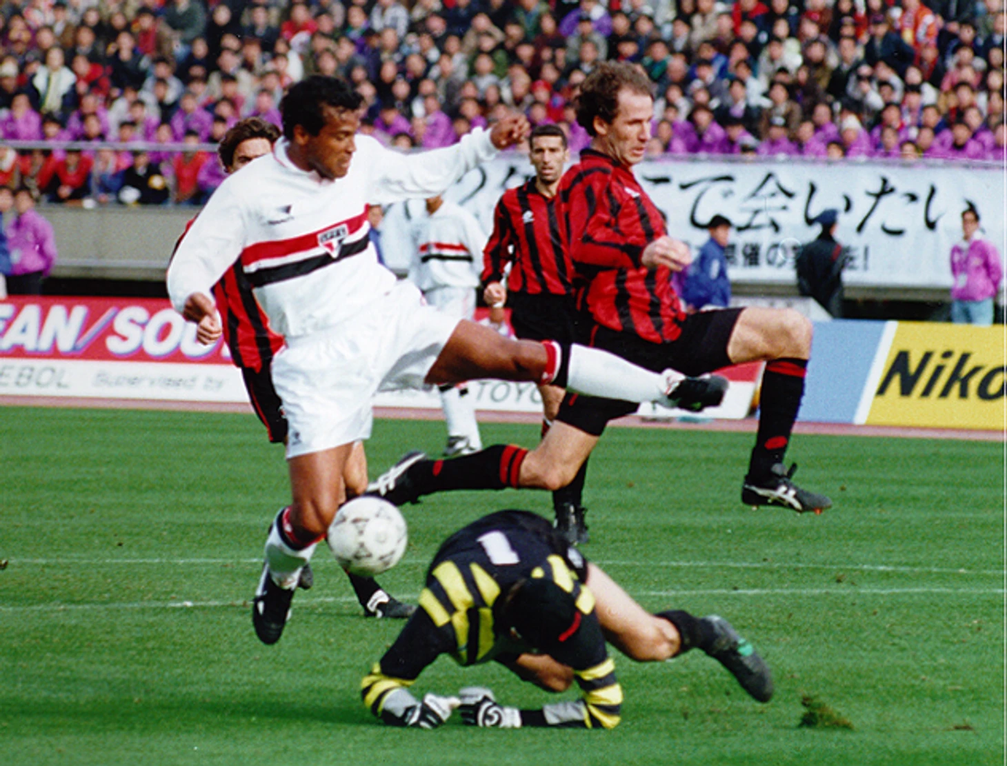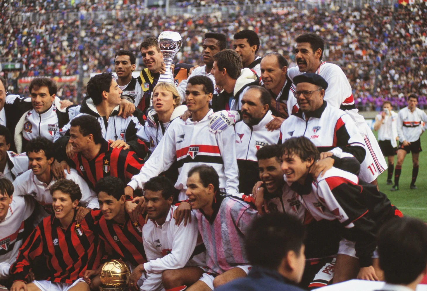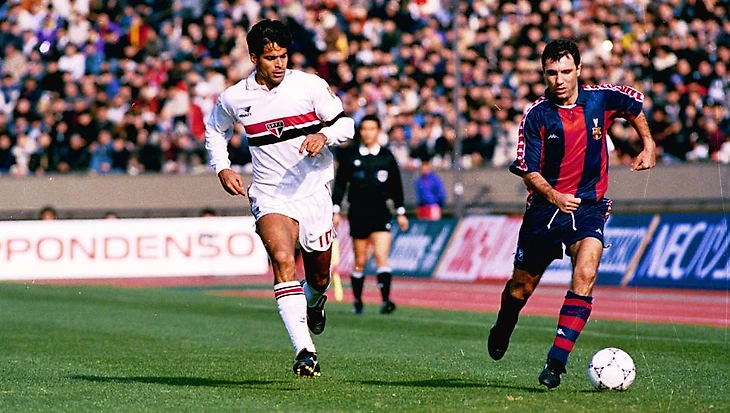 13 декабря на громадном, беспрестанно поддерживающим дуэлянтов интерконтинентальной битвы, Олимпийском стадионе японской столицы команда из Южной Америки переиграла знаковую для "Старушки Европы" воспитанницу футбола нетленного романтика Йохана Кройффа. "Барселона" стала жертвой токийского сражения - 1:2. "Сан-Паулу" забрал трофей на "Морумби". Сумасшедший гол болгарского лидера бронебойной атаки каталонцев Христо Стоичкова не уберёг победителя последнего розыгрыша Кубка чемпионов от поражения в Токио. Брат легендарного бунтаря Сократеса дважды торпедировал ворота испанцев и получил после завершения матча символичный подарок от спонсора Межконтинентального Кубка.