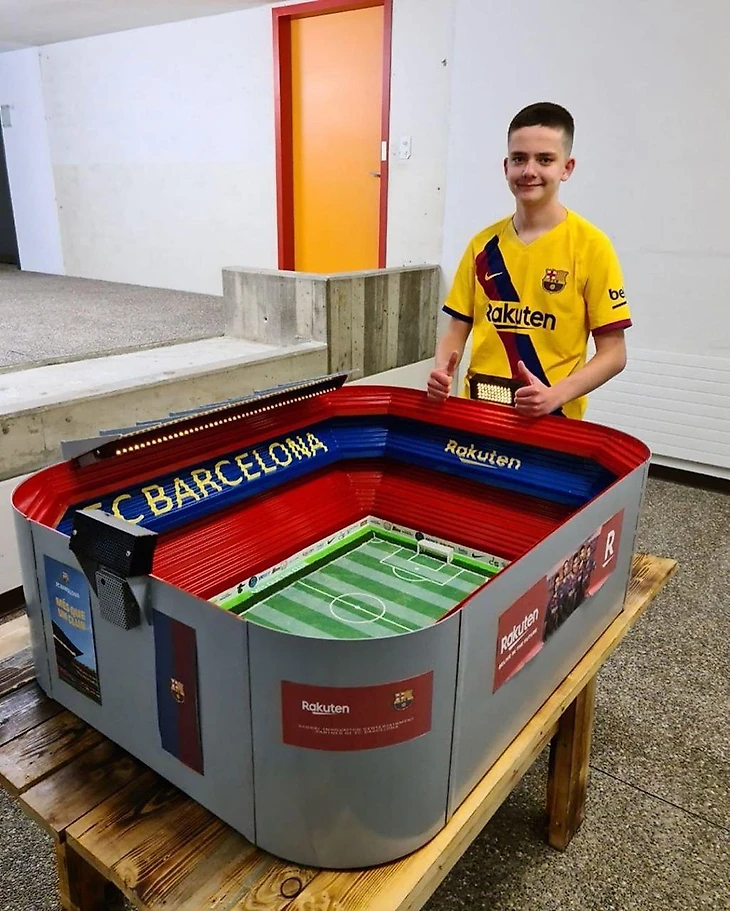 Паренек из Швейцарии построил своими руками уменьшенную копию «Камп Ноу»