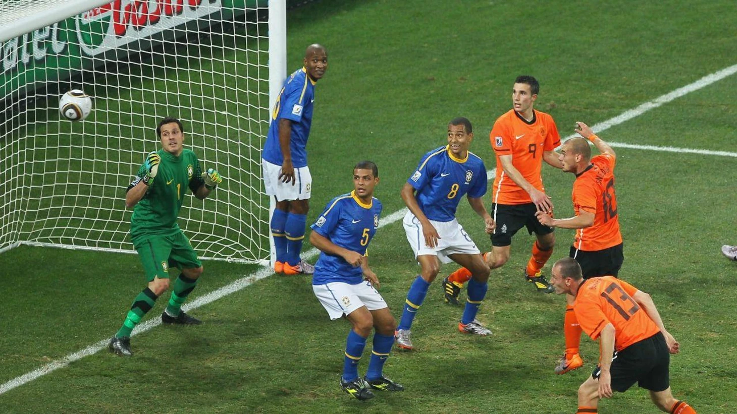 Тишину нарушили страстные крики о пенальти, когда на первых минутах матча центральный защитник Бразилии Жуан сбил Ван Перси, принимавшего кросс Дирка Кёйта. Девять минут спустя атмосфера стала еще напряжённее. Фелипе Мело вывел Робиньо на ударную позицию, а тот хладнокровно пробил мимо Мартена Стекеленбурга. Затем свои шансы увеличить разрыв упустили Жуан и Кака. Напряженность, пронизывающая Мюсёмплейн, чувствовалась даже от тех зрителей, кто вообще не болел за Нидерланды.