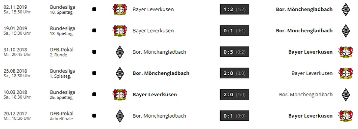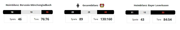 В период с 1994 по 2010 Гладбах не мог обыграть «Байер» в 26 играх чемпионата, однако последние три встречи остались за «жеребятами».