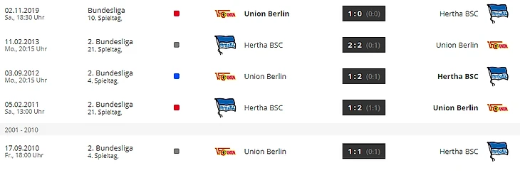 Статистика противостояния на стороне «Униона»: «железные» забивали во всех пяти берлинских дерби и не разу не проиграли на Олимпикштадионе (1 победа, 1 ничья).