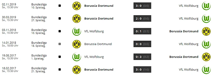 Дортмунд выиграл четыре последних матча в Вольфсбурге; «волки» ни разу не проигрывали пять домашних матчей подряд.