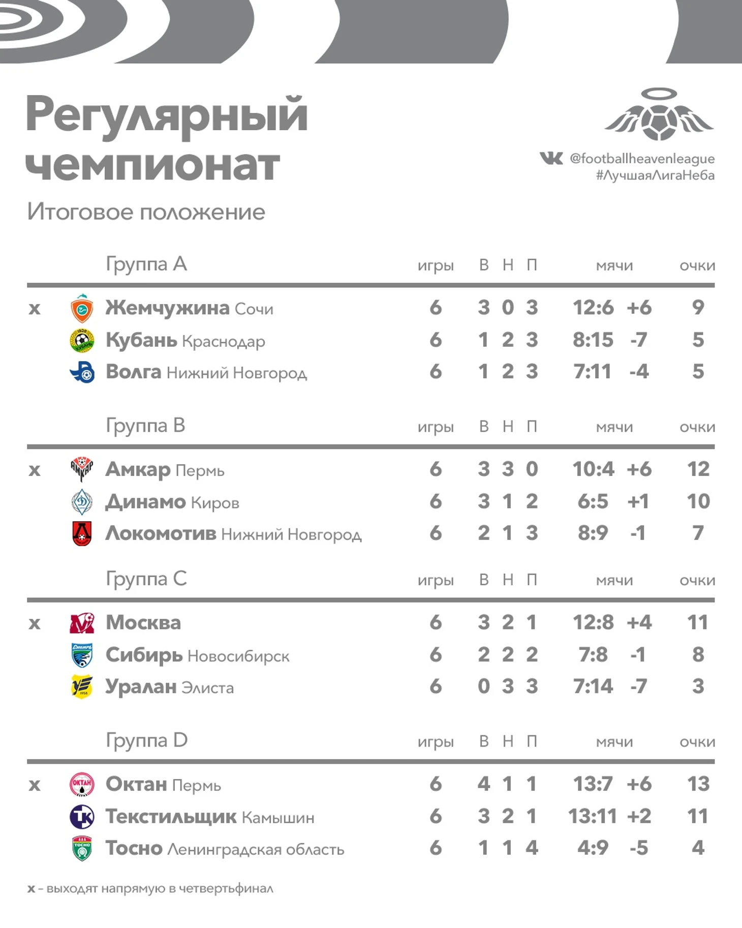 Футбольная Небесная Лига. Регулярный чемпионат. 6-й тур