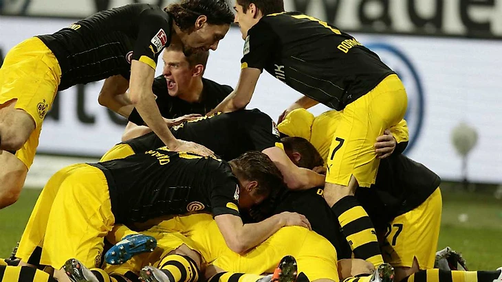На пути к берлинскому финалу, "Боруссия" выбила по пенальти "Баварию" Хосепа Гвардиолы. Но крепкие "волки" оказались "шмелям" не по зубам. Оптимистичное начало встречи, когда уже на пятой минуте Обамеянг открыл счёт, сменилось нокаутом к перерыву. Луис Густаво, Кевин де Брюйне и Бас Дост, по сути сделали игру уже в первой половине встречи, тем самым превратив второй тайм в формальность. Красивая победа закрепила успех "Вольфсбурга" в том сезоне, а национальный кубок был выигран впервые в истории клуба.