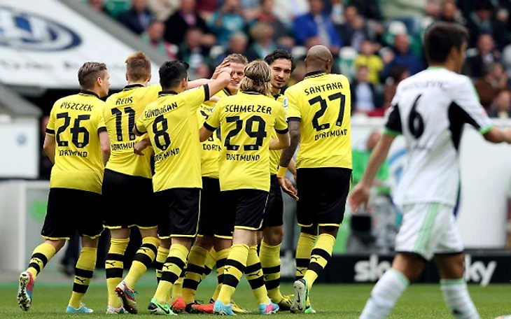 Заканчиваем зрелищной ничьей, которая состоялась в кампании 2012/2013. Свену Бендеру удалось открыть счёт уже на пятой минуте, но "Вольфсбург" отличился трижды в первом тайме усилиями Ивана Перишича и Налдо. В отличии от кубкового финала-2015, в отчётной встрече после перерыва Дортмунду таки удалось унести ноги почти невредимыми с "Фольксваген Арены", благодаря дублю Марко Ройса на 84 и 87 минутах.