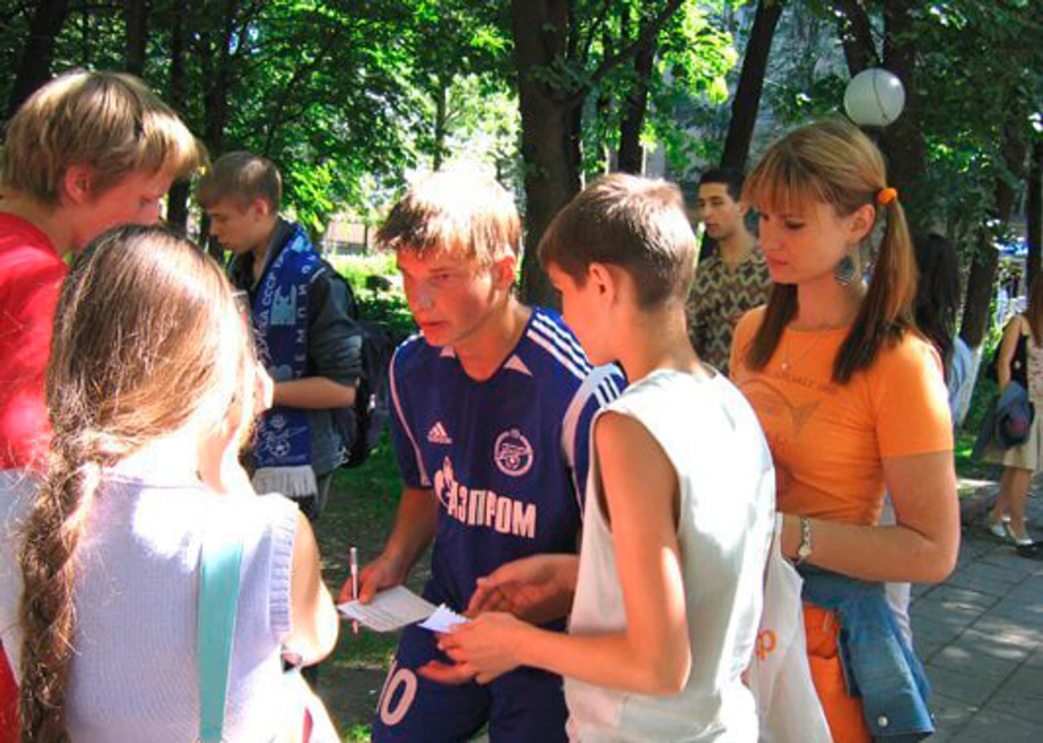 Никто не афишировал, что на футбольных съемках будет Аршавин, но через массовку инфа как-то разошлась. В итоге толпа собралась, снимали-то на обычной пришкольной площадке рядом с телецентром на Чапыгина, это на Петроградке. Обычно мы, актеры, как раз туда ходили в перерывах сами погонять мяч. Приходим утром в день съемок с Аршавиным – а там куча людей, девчонки с плакатами «Андрюша, I Love You» и все такое.