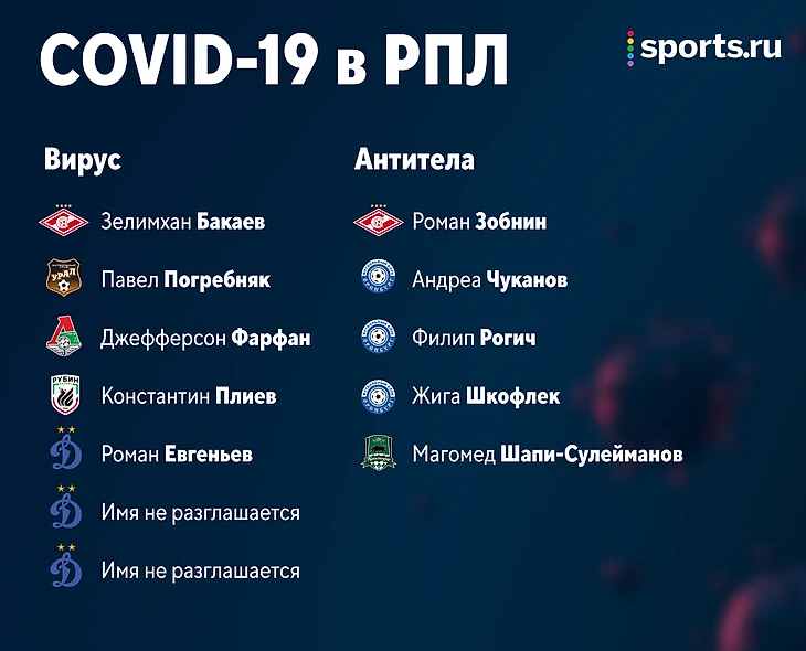 Бакаев заболел коронавирусом, у Зобнина нашли антитела. Все игроки РПЛ с COVID-19