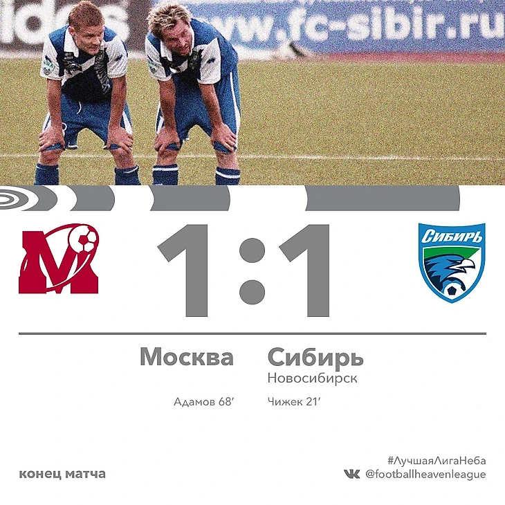 В случае победы с разницей в три мяча Москва становилась чемпионом регулярки. Ничьей было ей вполне достаточно для локального триумфа в своей группе. Поражение же при учете личных встреч в 1/4 выводило Сибирь. И гости с первых же минут поперли на Жевнова, в штрафной то и дело происходили страшные пожары (Набабкина-то нет!), если бы не белорусский вратарь хозяев, сибиряки уже минуте к 30-й вели бы с довольно комфортным отрывом, но Юрий спасал. В атаке у Москвы тоже не было особой мысли, Бракамонте отдавал абы куда, постоянно терялся в простых ситуациях, без Самедова пропал Семак, тупил Кириченко. На 21 минуте Чижек пробрался по правому флангу и все-таки открыл счет в этом матче... После перерыва тренером черно-гранатовых был сделан ряд замен, призванных оживить атаку, и они сработали. До 60 минуты Сибирь продолжила сценарий первого тайма, но уже не так результативно и опасно, а затем москвичи стали неуклонно наращивать преимущество. Итогом этого стал гол Адамова на 68 минуте, он выпрыгнул на подаче и отправил пятнистый снаряд головой в ворота блестяще действовавшего в целом Чепчугова! Чем дальше в лес, тем больше сибиряки зажимались у своих ворот, как итог, конец матча стал зеркальным отражением первого тайма. Теперь уже столица могла закидывать град мячей, но сибиряки больше не прогибались под изменчивый московский мир и пропускать отказались. 1:1 - столица в четвертьфинале, но воображаемый кубок за победу в сводной табели о рангах уезжает в Пермь к сенсационному Октану! МОСКВА - ЧЕМПИОН ГРУППЫ С! ПОЗДРАВЛЯЕМ!