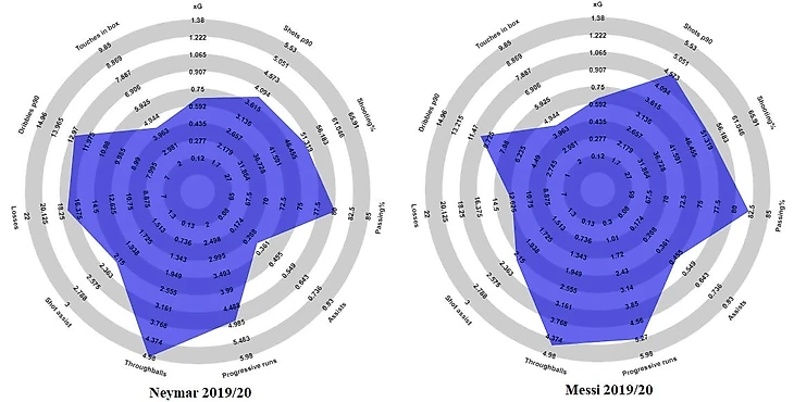 Когда дело дойдет до смены аргентинского лидера, «Барселона» не найдет лучшего игрока, чем их прежняя звезда. Для полноты картины стоит сравнить их по тем же же метрикам, которые помогли в случае с Коутиньо и Гризманном, построенными на основе данных лучших игроков ТОП-5 лиг.
