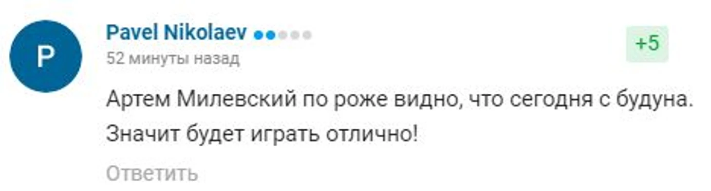 Читаем в перерыве комментарии на нашем сайте. «Равная игра», «лучше Бундеслиги», ничего удивительного. А нет, есть очень смешной комментарий.