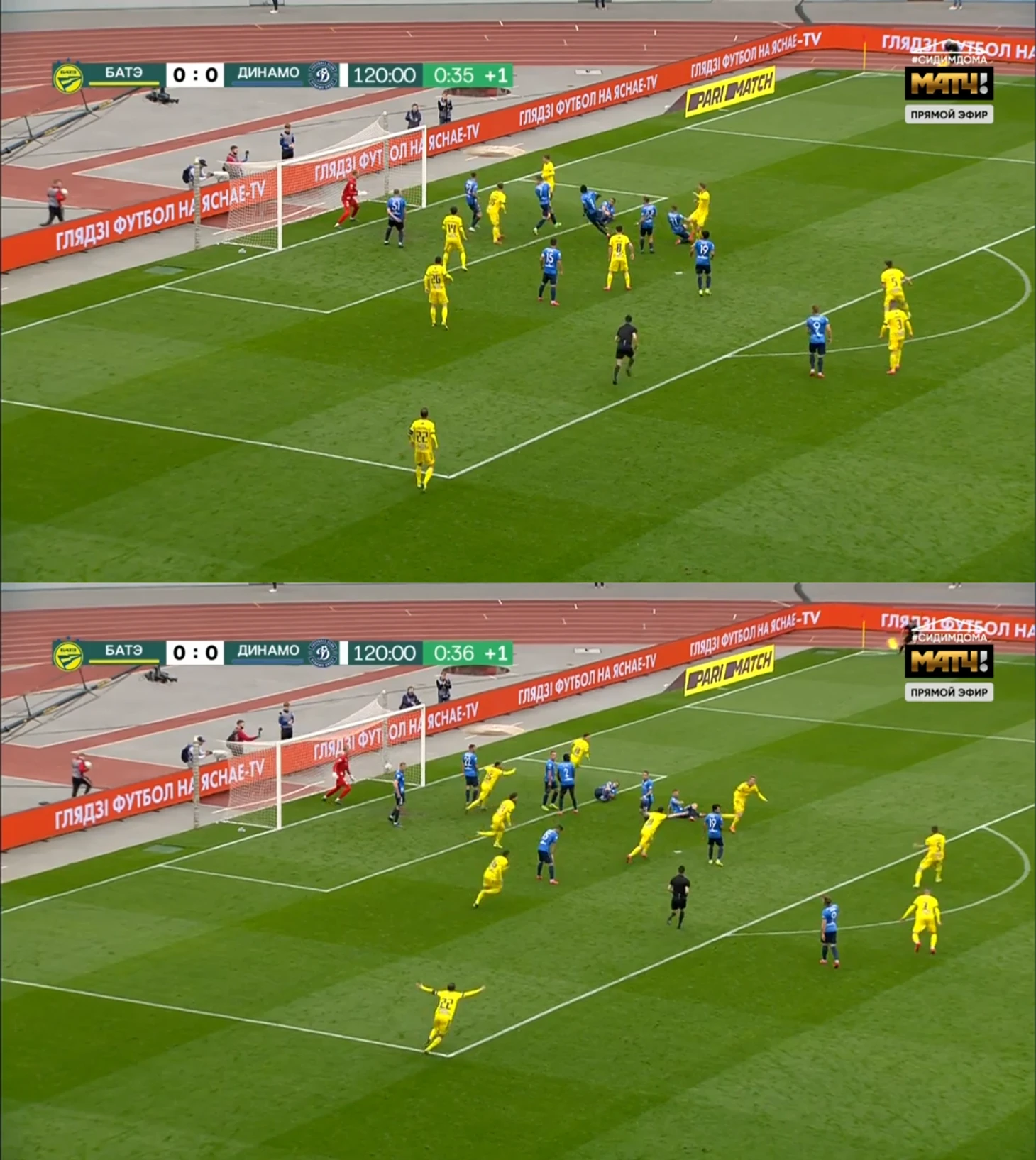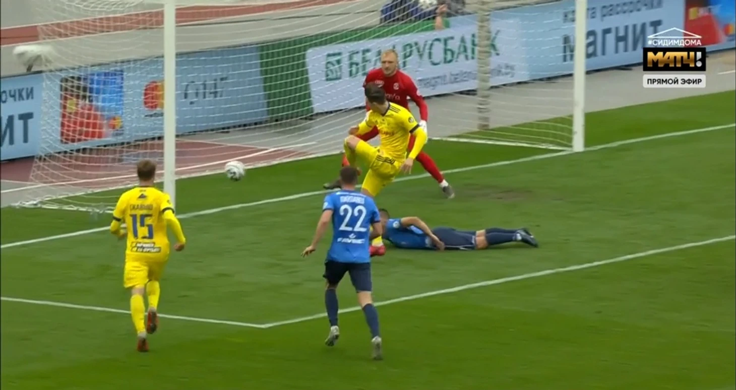 …Резкий взрыв адреналина в первые пять минут овертайма! Сначала обмен дальними ударами (разумеется), а после одного из них неожиданный опасный штрафной в 25 метрах от ворот БАТЭ. И тут бабах – крестовина! Это Савицкий так приложился.