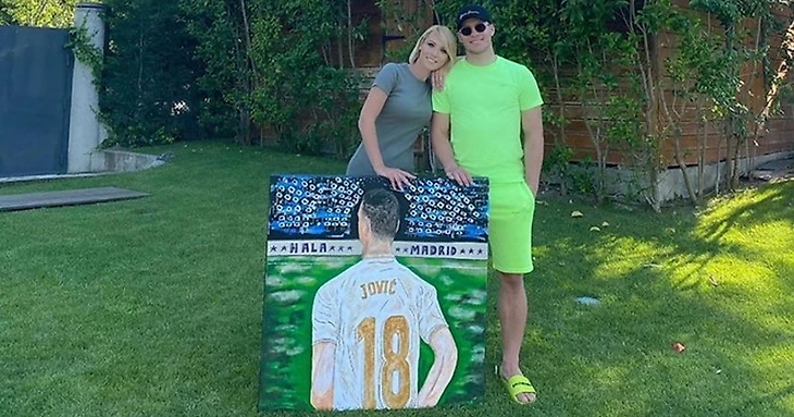 Лука Йович выложил в инстаграм фотографию с картиной, на которой нападающий изображен в футболке мадридского клуба.