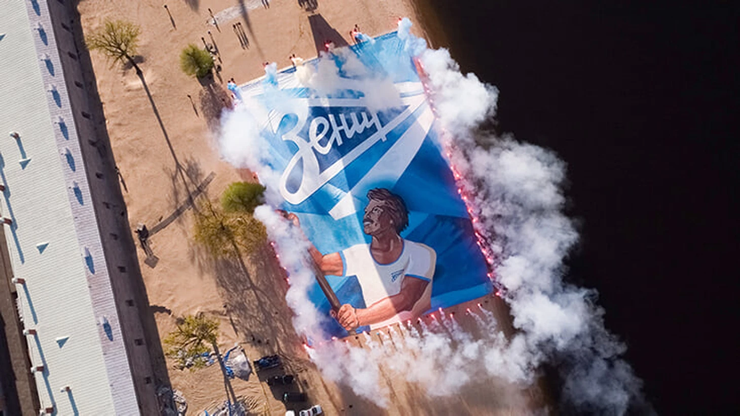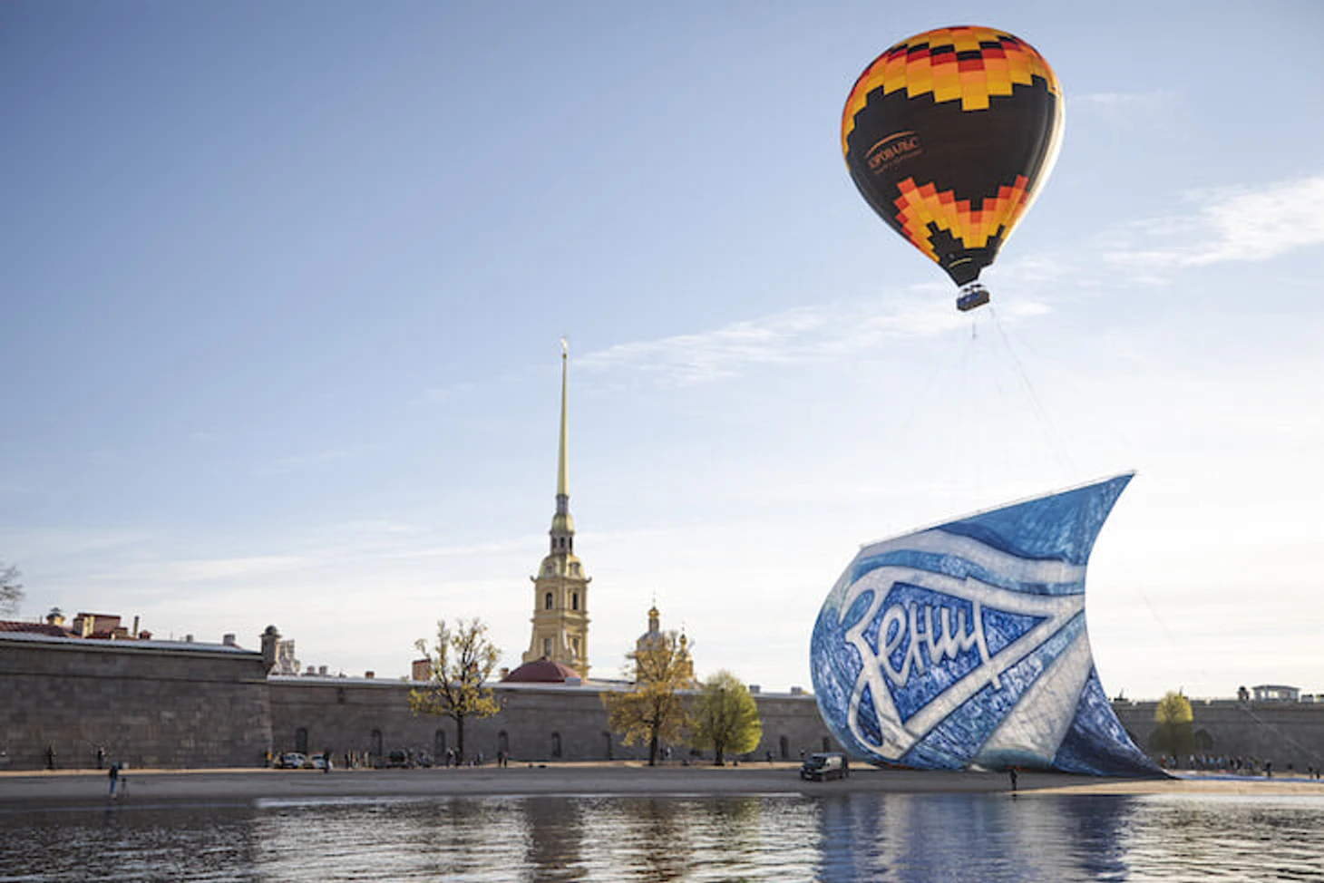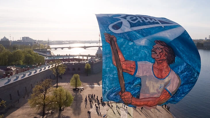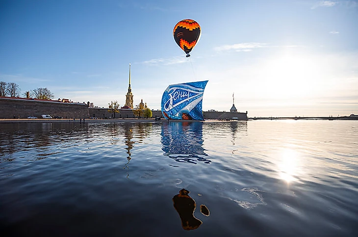 Баннер действительно масштабный – официальный сайт «Зенита» говорит, что это одно из самых больших полотен в истории европейского футбола. Размер – 60х40, вес ткани – более 500 кг. Чтобы поднять зенитовца над акваторией Невы, потребовался один из самых мощных аэростатов в России.