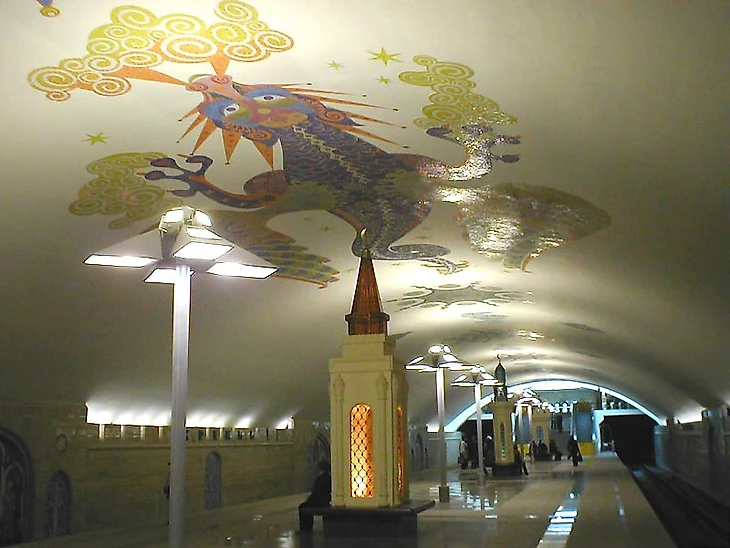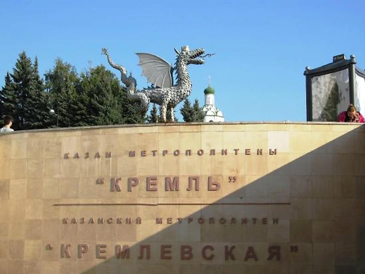 Казанское метро открыто в 2005 году - к тысячелетию города. На входе установлен змей Зилант - символ Казани и «Рубина». Спустя несколько лет он был испорчен фанатами «Спартака».