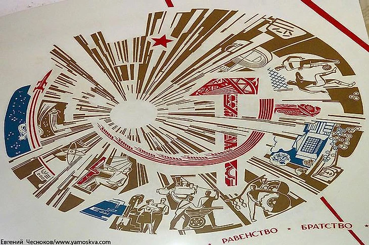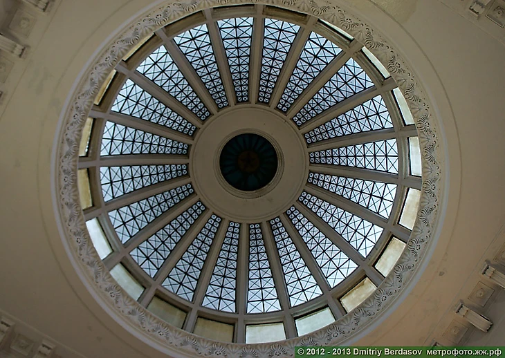 Станция «Динамо» была открыта в 1938 году. Купол состоит из ромбических орнаментов, вероятно, отсылающих к эмблеме спортивного общества.