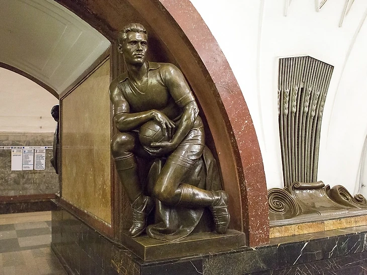 На станции более двух десятков барельефов с различными видами спорта, в числе которых есть изображение Григория Федотова.