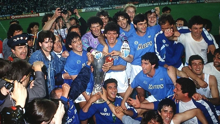 Неаполитанцы после победы в финальных матчах Кубка УЕФА над немецким "Штутгартом".