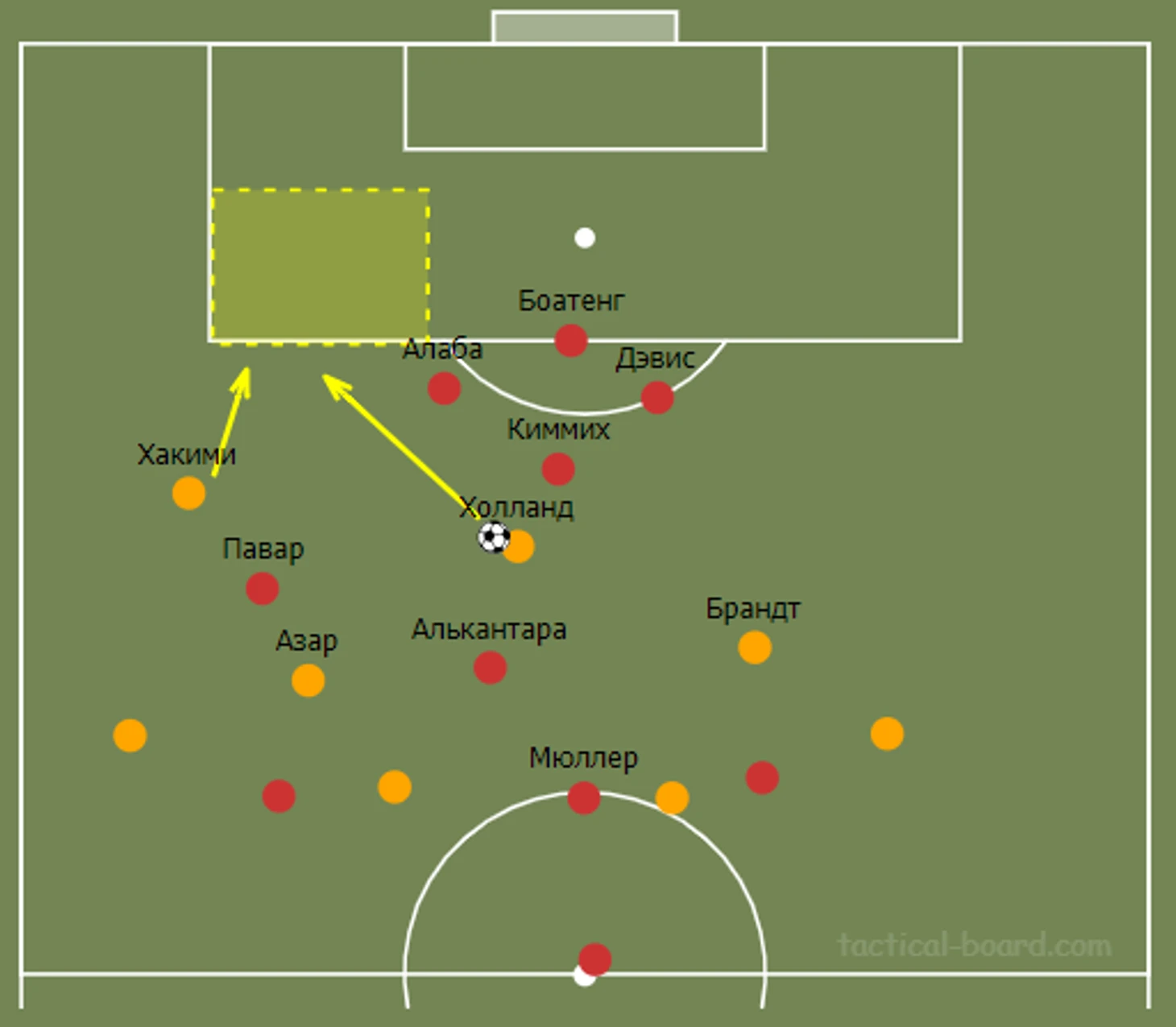 Единственным вариантом Дортмунда в таком случае были только забросы. Менять что то было поздно. Он пытался делать примерно такую модель: