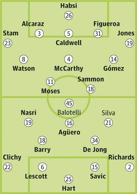 Запасные: Пантиллимон, Тэйлор, Милнер, Сабалета, Джонсон, Коларов, Харгривз, Джеко, Наймли, Разак