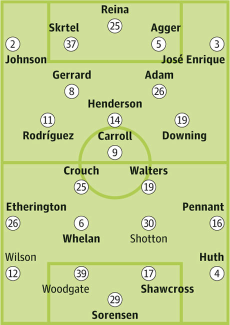 Запасные: Дони, Келли, Беллами, Куйт, Спиринг, Каррагер, Робинсон, Шелви, Флэнаган, Коатес, Аурелио