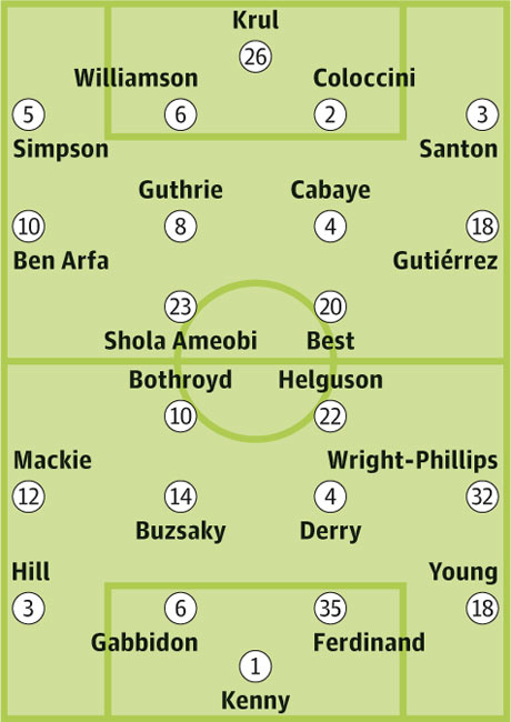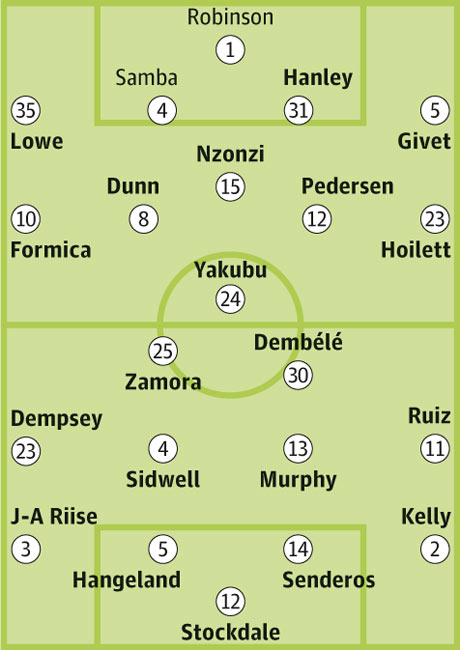 Запасные: Этеридж, Бэйрд, Хьюз, Сомогуи, Этуху, Касами, Б.Х. Риисе, Джонсон, Бриггз, Дэвис, Касами, Дафф, Фрай, Геков, Орландо Са