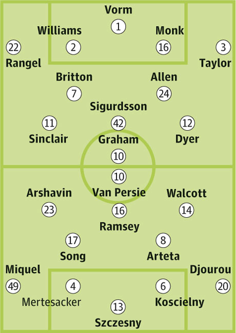 Встречаются две команды, исповедующие привлекательный футбол, однако не так часто забивающие, если забыть про Робина ван Перси. В последнем для «Арсенала» матче отличился Тьерри Анри, что стало его невероятным возвращением в стан «канониров», но скорее всего в воскресенье француз снова останется на скамье запасных. По крайней мере, защитники «Суонси» будут на это надеяться.