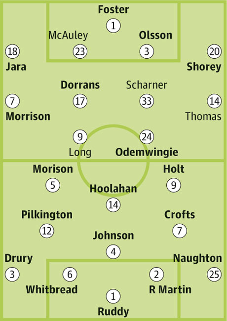 Запасные: Бегович, Апсон, Уилкинсон, Делап, Пеннант, Паласиос, Фуллер, Хиггинботтам, Джером, Диао, Джонс, Уайтхед