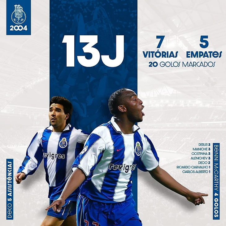 Цифры Лиги чемпионов УЕФА 2004: 13 игр, 7 побед и 5 ничьих. 20 забитых голов. Деку выполнил 5 голевых передач, а Бенни Маккарти четыре раза расстраивал соперников.