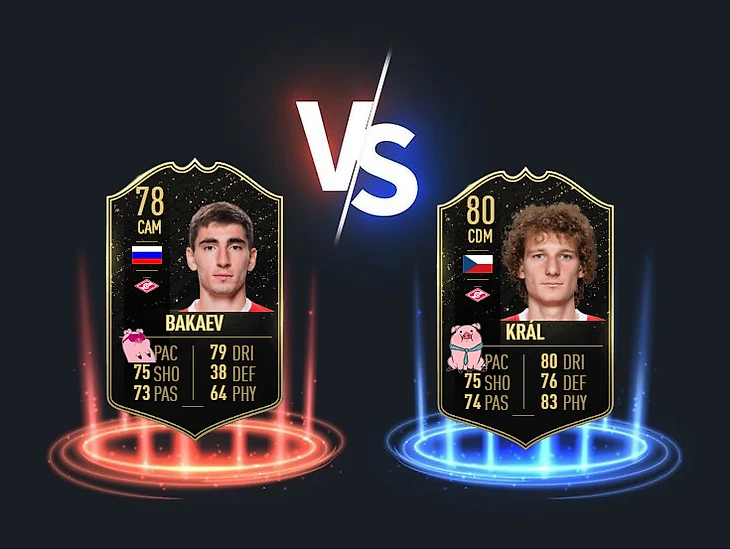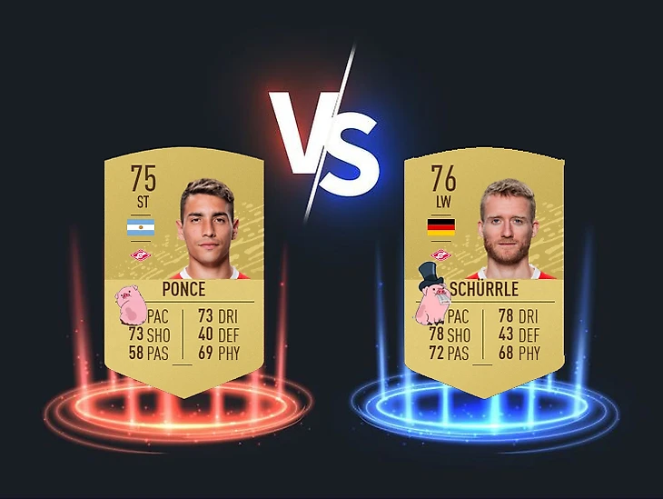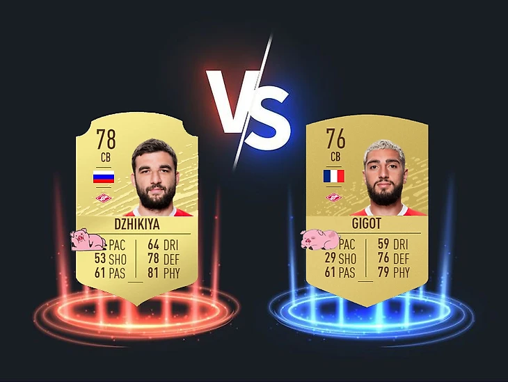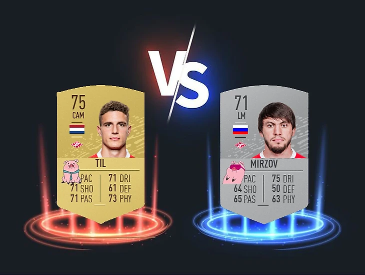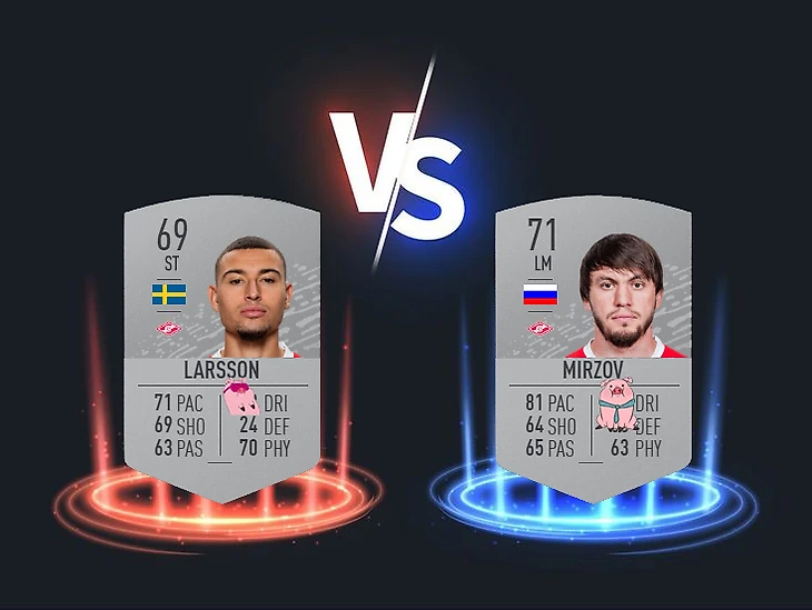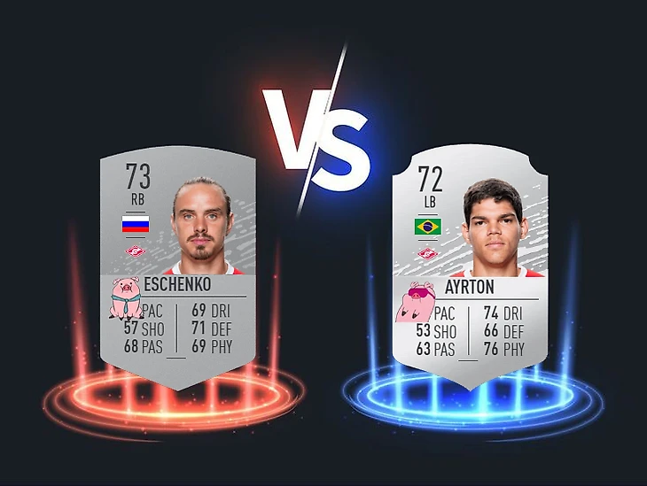 Уже на горизонте появилась РПЛ и, чтобы ускорить ожидание, поиграем со скоростными данными игроков «Спартака». Для игры взяты карточки игроков из «FIFA-20». Показатель скорости закрыт прекрасной хрюшкой. Ваше задача угадать у кого из дуэлянтов скорость выше.