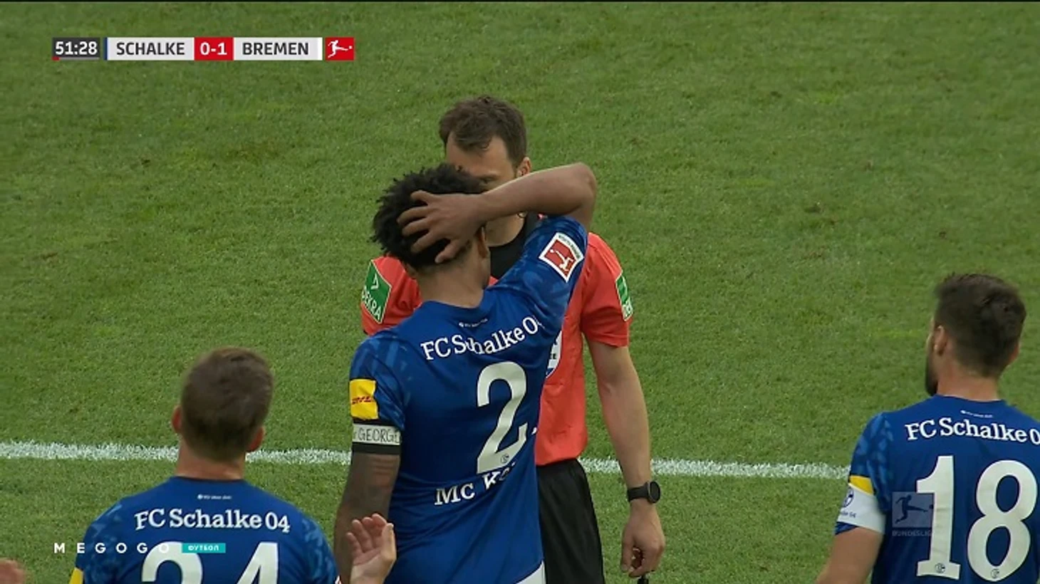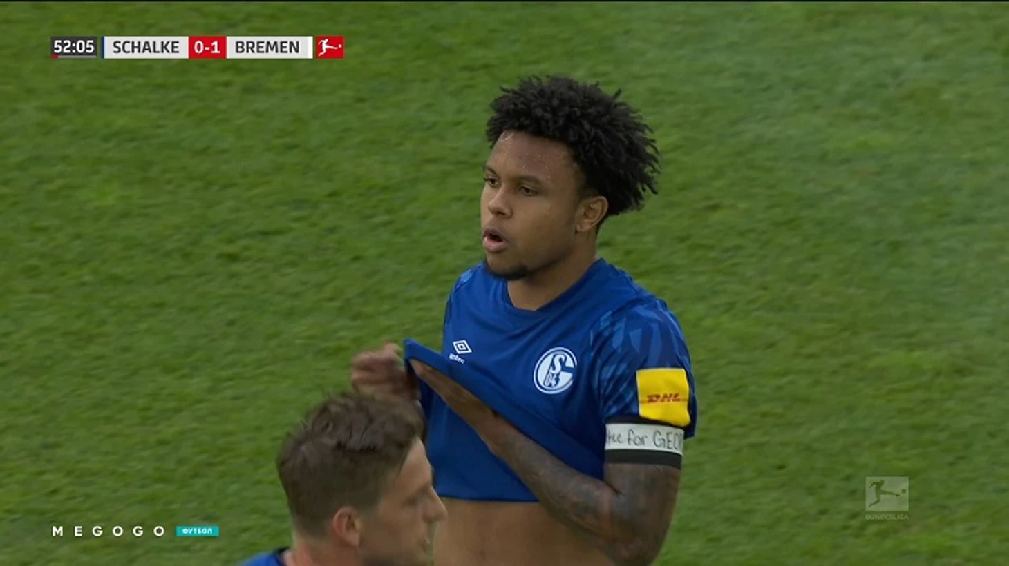 В субботу хавбек «Шальке» Уэстон Маккенни вышел на игру с «Вердером» с повязкой на руке – на ней виден рукописный текст Justice for George («Правосудие для Джорджа»).