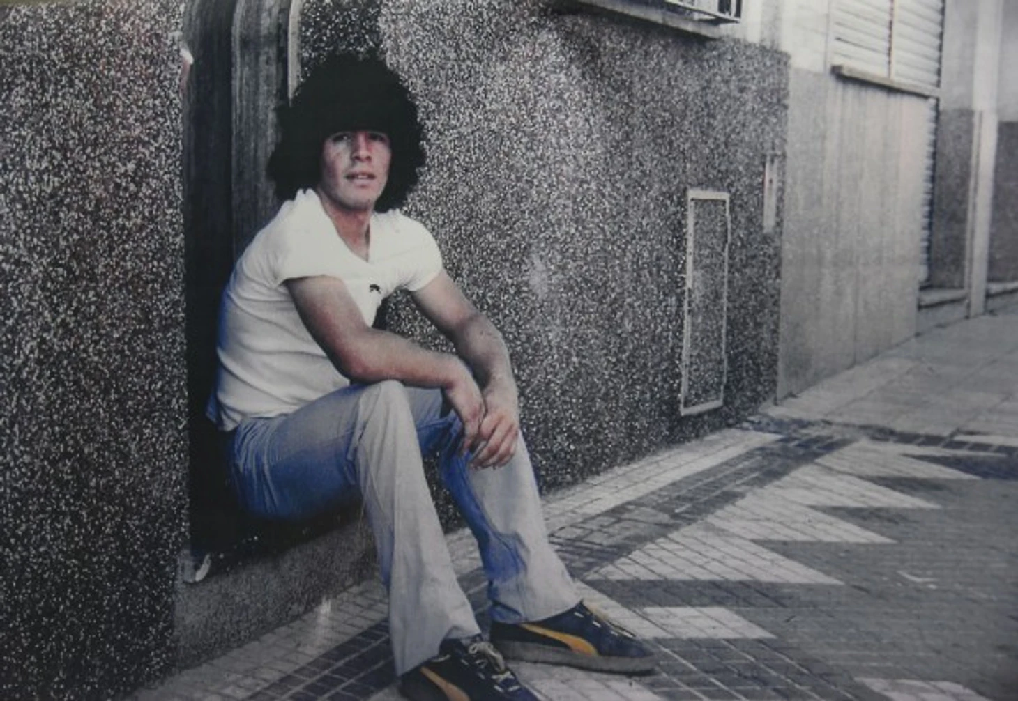 Диего позирует на ступеньках бывшего дома