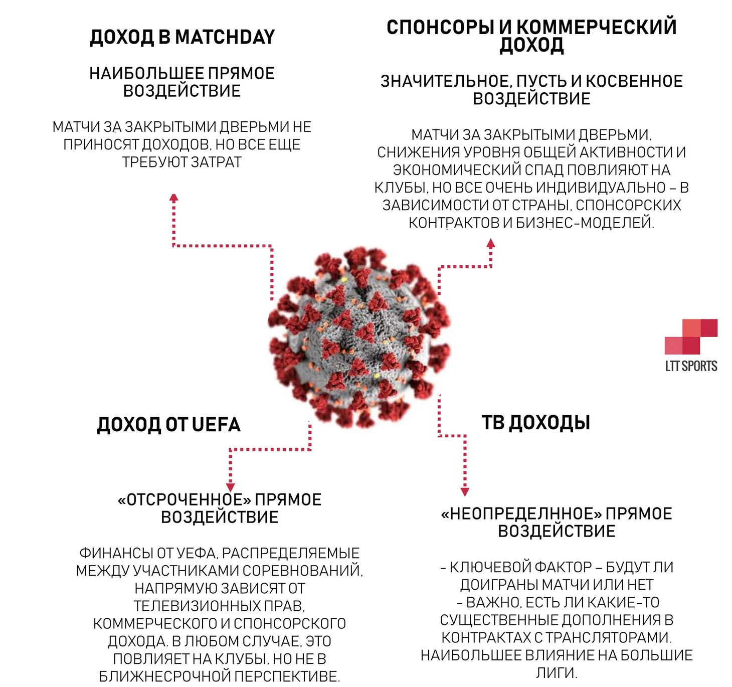 Бизнес-модель – теперь доходы клубов не должны быть так тесно привязаны к матчам и на все 100% зависеть от доходов в matchday, то есть в день игры. Такая бизнес-модель сгубила сразу несколько клубов в Европе, из-за приостановки чемпионатов они просто потеряли свой источник дохода.