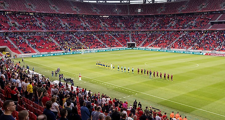 А теперь самое важное: матч прошел со зрителями! На 65-тысячный стадион «Ференц Пушкаш», который должен принимать матчи Евро-2020, пустили 10 тысяч человек со строгими ограничениями: измерение температуры на входе, обязательное ношение масок, соблюдение расстояния в четыре кресла между зрителями.