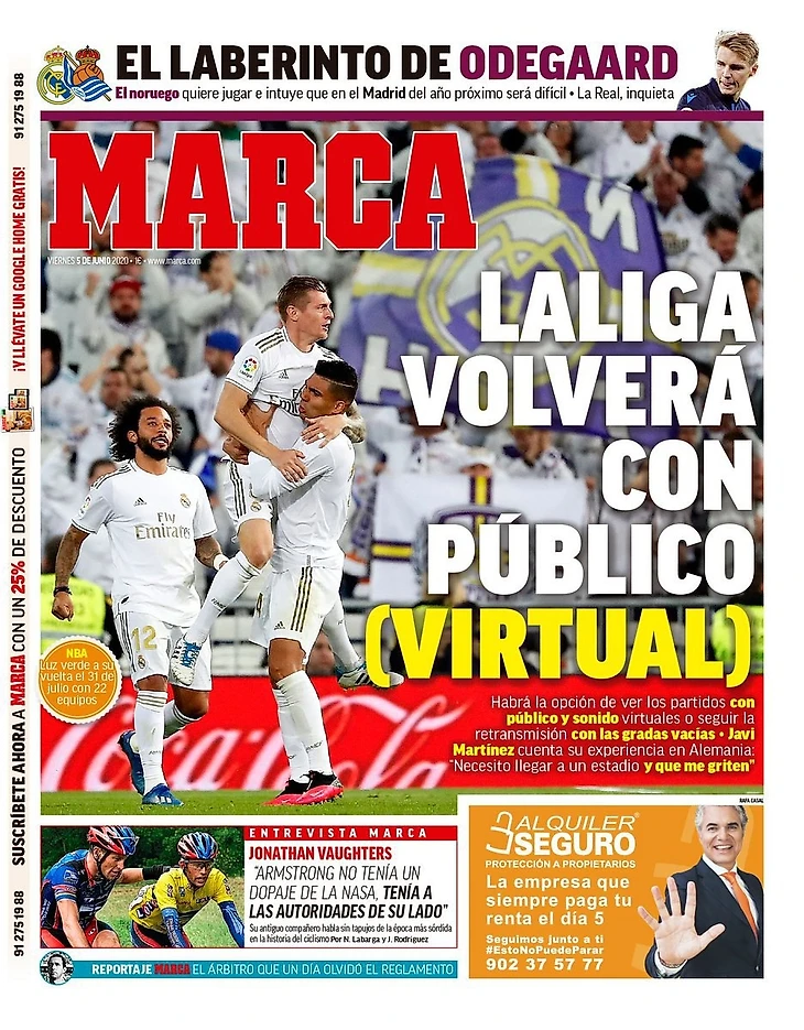 FIFA в реальной жизни.Коронавирус не позволяет болельщикам поддерживать свои любимые команды с трибун. Из-за этого футбол теряет свой шарм, фанаты сетуют на то, что даже большие матчи становятся похожи на обыкновенные тренировки.Ла Лига решила собирается решить эту проблему достаточно необычным способом, сообщает Marca.При поддержке технологии 3D-анимации, управляемой Mediapro, пустые трибуны будут заменены на анимированное изображение. Матчи будут сниматься только на основную камеру, так как в связи с карантином операторы не смогут присутствовать на самом поле. Нас ждёт виртуальная картинка, сопровождаемая звуком, который основан на игре FIFA 20 и представляет собой реальные записи каждого стадиона.Даже интенсивность шума будет возрастать при возникновении опасных моментов, как это происходит в футбольных видеоиграх. Нам будет предложено два канала параллельно. В одном из них будет видна виртуальная реальность, а в другом - реальный стадион с его настоящей тишиной, и зритель сможет выбирать между тем или иным.