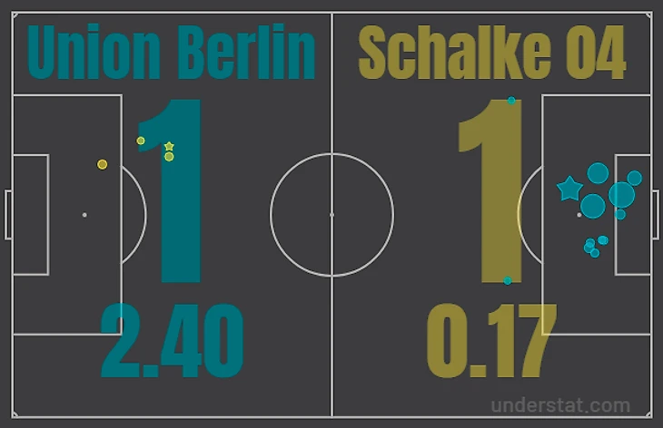 Тренеры решили выпустить свои команды на второй тайм в тех же составах. Однако вторые сорок пять минут матча оказались менее насыщенными. Лишь на семидесятой минуте игры командам удалось создать относительно опасный момент. Матондо получил мяч и имел возможность выйти один на один с вратарем, но защита «Униона» оказалась быстрее – нападающему помешали пробить. Отметим, что во втором тайме футболисты «Шальке» стали чаще бить по воротам, однако ударов в створ у берлинцев все равно было больше. На 87-й минуте матча у футболистов «Униона» была возможность вырвать победу; после подачи углового мяч получил Хубнер, скинул его на Шлоттербека, который оказался на краю вратарской один на один с голкипером, но Нюбель сыграл уверенно. Матч так и закончился ничьей. «Горняки» продолжили прокладывать шахту до дна турнирной таблицы Бундеслиги, а «Унион», получив второе очко после возобновления чемпионата, вполне уютно расположился на четырнадцатой строчке таблицы.