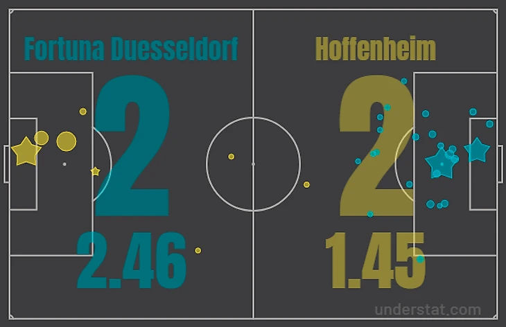Казалось, что для «Хоффенхайма» теперь все кончено, но команда, надо отдать ей должное, не пала духом и продолжала биться. И награда за стойкость пришла тут же – Даббур добил мяч в ворота. «Фортуна» же не меняла свою тактику навесов, и Хеннингс забил было гол-близнец первого, но судья в этот раз был благосклонен к гостям и углядел нарушение в штрафной. «Хоффенхайм» выстоял в первом тайме, а потом Схройдер внес коррективы в перерыве и игра разительно изменилась.