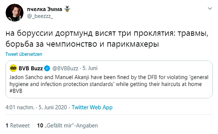Джейдон Санчо и Мануэль Аканджи были оштрафованы DFB за нарушение «общих стандартов гигиены и защиты от инфекции». Они сделали стрижки дома.
