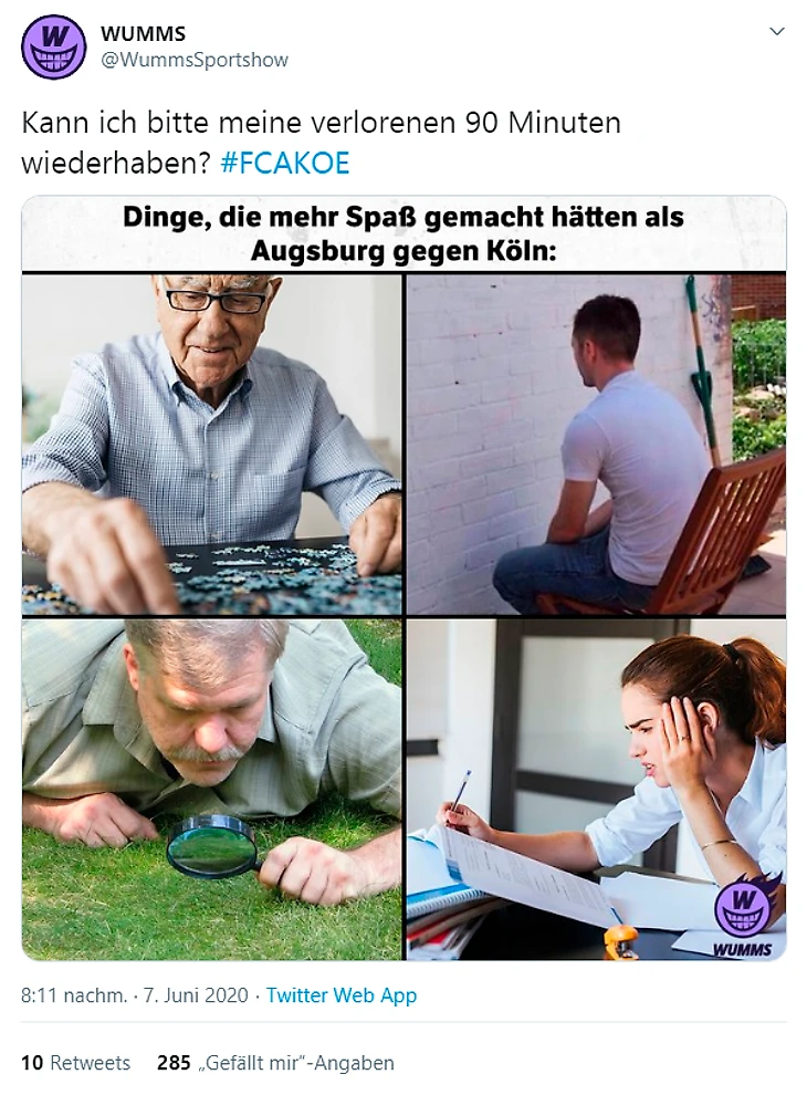 «Может кто-то вернуть мне потерянные 90 минут? Вещи, которые веселее, чем матч между «Аугсбургом» и «Кёльном».