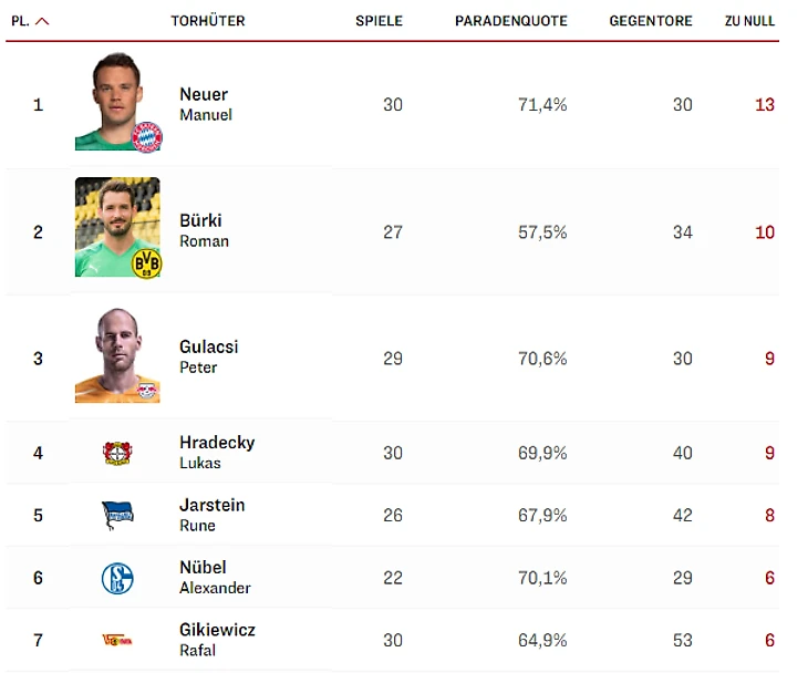 *игрок – кол-во игр – % отраженных ударов – пропущено мячей – матчи на ноль