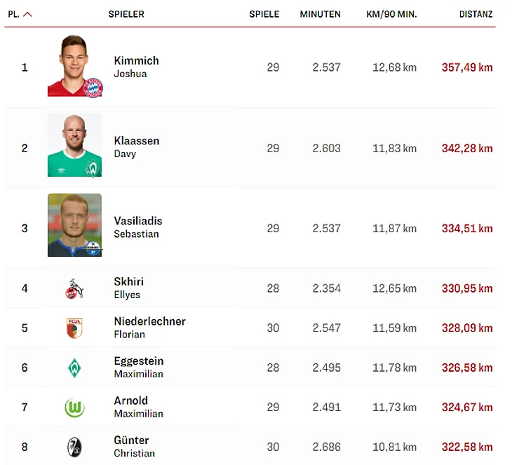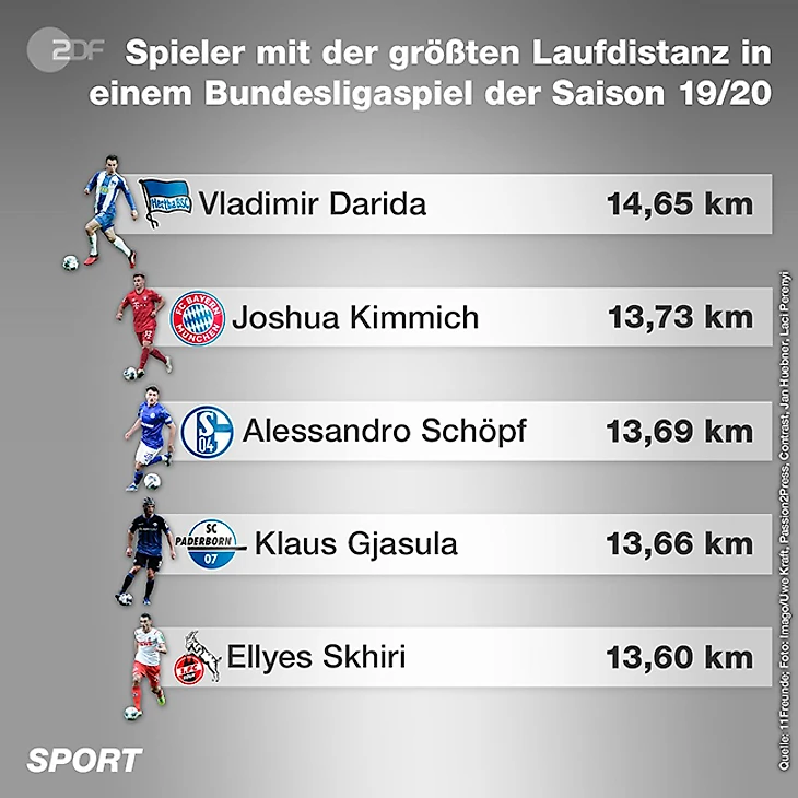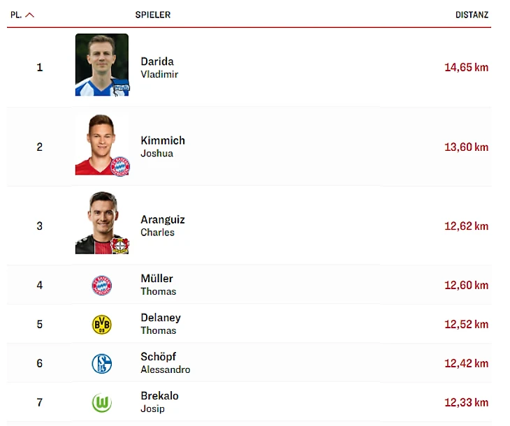Владимир Дарида в матче против Дортмунда побил рекорд по количеству километров за один матч Бундеслиги, который сам и поставил. Игроки с наибольшей дистанцией за один матч в текущем сезоне.