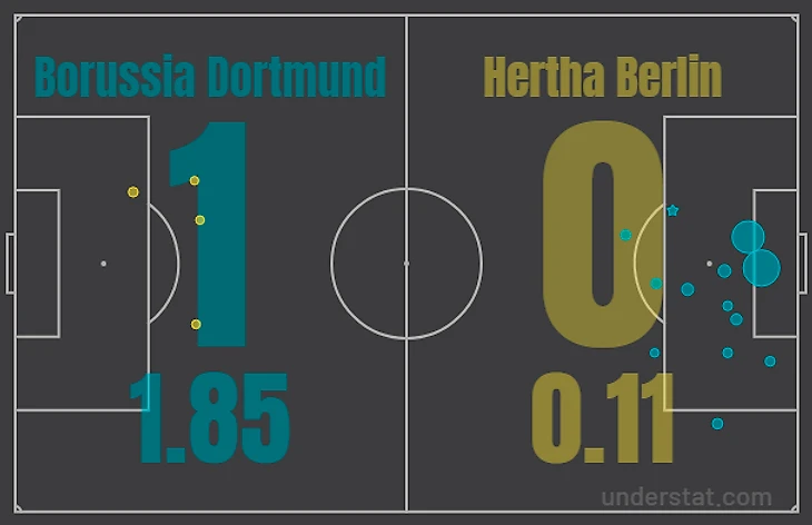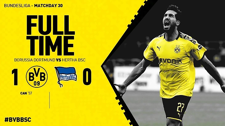 На поле арены «Сигнал Идуна Парк» «Боруссия» выходила, уже держа в уме результат игры «Лейпцига» с «Падерборном». Для «шмелей» выдалась отличная возможность увеличить отрыв от «быков» до четырех очков (понятно, что о чемпионстве речь уже не идет). Вот только в соперниках была упрямая «Герта». После рестарта сезона берлинцы набрали 10 очков (на одно больше (!), чем Дортмунд) и забили 11 голов (всего на один меньше). Если еще учесть, что «Герта» очень умело обороняется, в то время как хозяева играли без Холанда... Становится понятно, почему хотя бы первый тайм получился небывало спокойным для вратарей. Хакими, конечно, неоднократно врывался в штрафную после фирменных ускорений, однако до ударов в створ до перерыва так и не доходило. У «Герты» доходило, однако дальние выстрелы по воротам Бюрки опасности не несли.