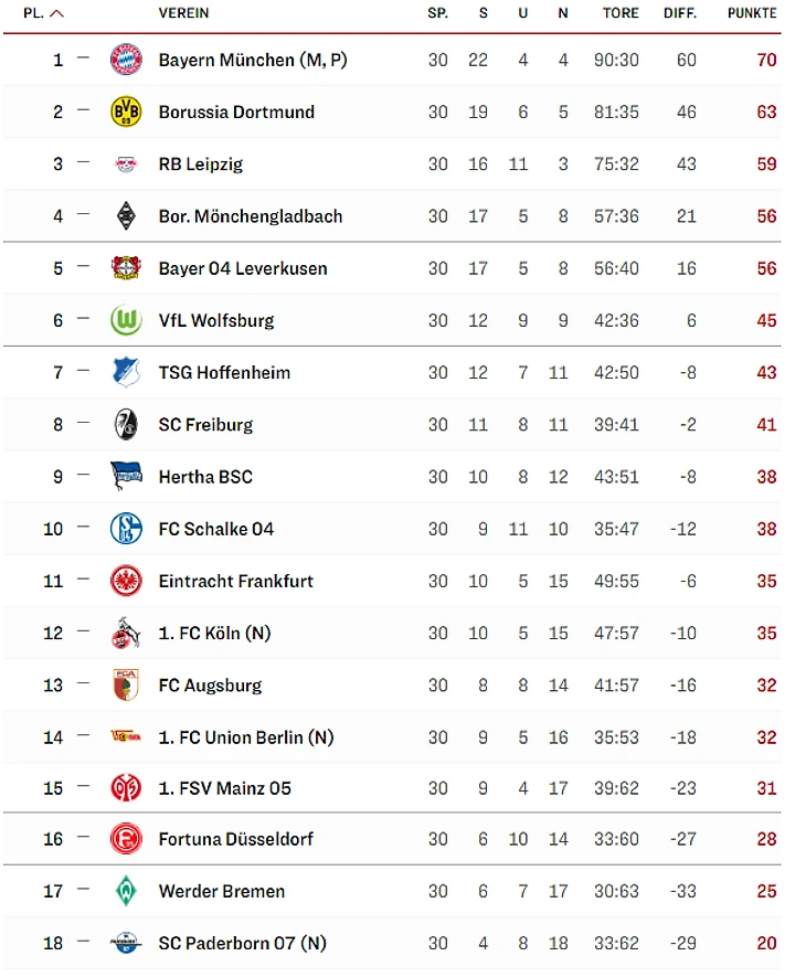 Ожесточенная борьба за Топ-4 и не только... Обзор 30-го тура Бундеслиги