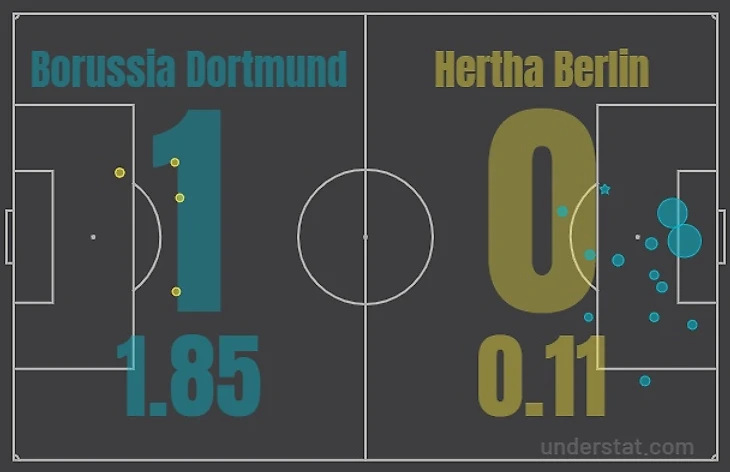 У "Герты" за весь матч был один опасный момент, когда Александер Эссвайн бил с линии штрафной в нижний угол, но этим ударом напугал только разминающихся игроков Дортмунда.