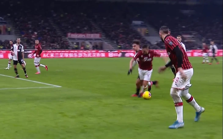 • Желтая карточка Тео Эрнандесу, лишившая его ответной встречи. Вторым неверно принятым решением Валери в матче стало наказание Тео Эрнандеса, который на 42 минуте встречи слишком эмоционально отреагировал на то, что рефери не заметил однозначного фола со стороны Дибалы на Беннасере. Аргентинец на полной скорости врезался в область лопатки алжирца, уронив его на газон, и, завладев мячом, устремился в контратаку. Валери проигнорировал эпизод, из-за чего Эрнандес в пылу гнева поставил подножку Дибале.