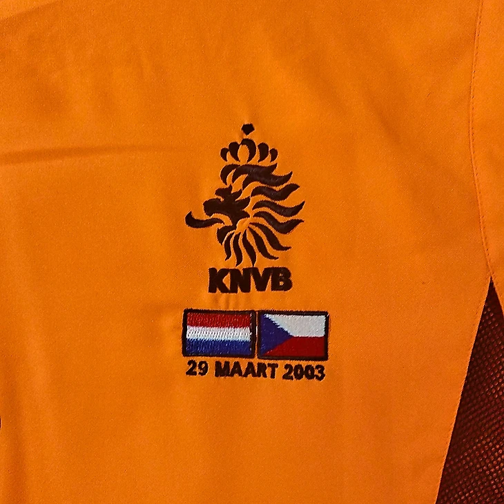К слову о нанесениях, у голландцев очень классно наносили подробности матча. Решили заморочиться вышивкой флагов и даты матча, причём на весь цикл отбора и даже товарняки.