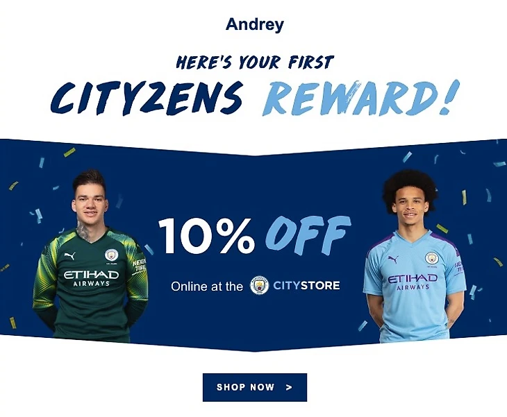 После этого «Сити» пришлет вам промокод на скидку в клубном магазине. Как вы откажетесь от покупки, если вы уже часть команды?