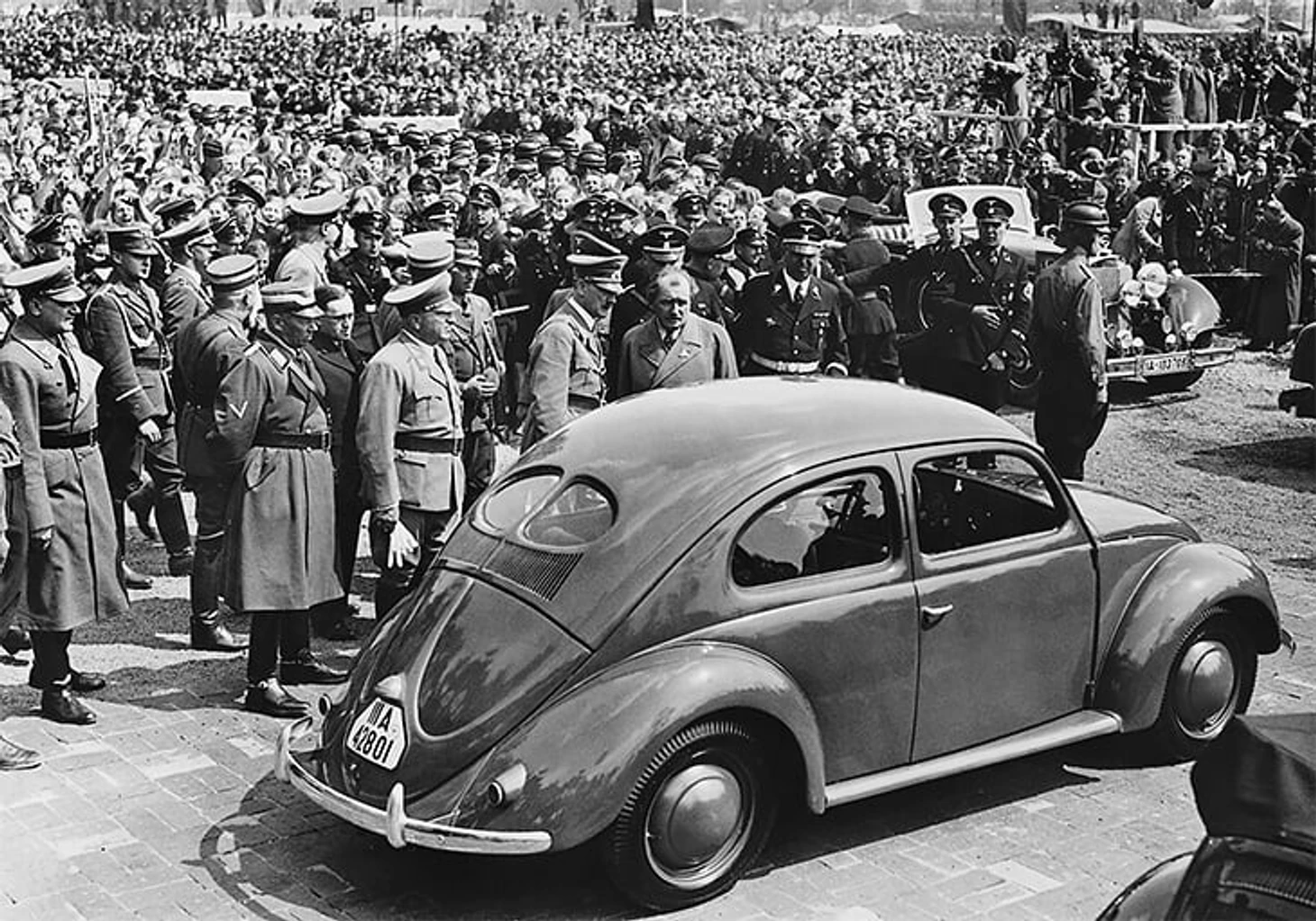Как несложно догадаться, он производился на заводе Фольксваген в Вольфсбурге, но в период 1938-1945 гг. этот город назывался по-другому – Stadt des KdF-Wagens (Город автомобилей KdF), а название заводской футбольной команды занимало две строчки – Wettkampfgemeinschaft Betriebssportgemeinschaft Volkswagenwerk Stadt des KdF-Wagens (Спортивное общество рабочих завода «Фольксваген» из города автомобилей KdF). На основе этого союза позже родится футбольный клуб «Вольфсбург», чемпион Германии-2009.