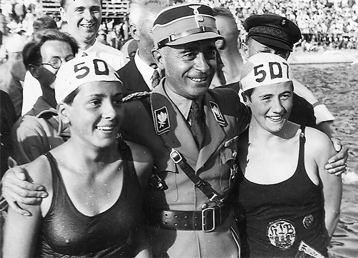 По приказу министра пропаганды Геббельса имена всех евреев, принимавших участие в спортивных соревнованиях начиная с 1908 года были удалены из хроники.