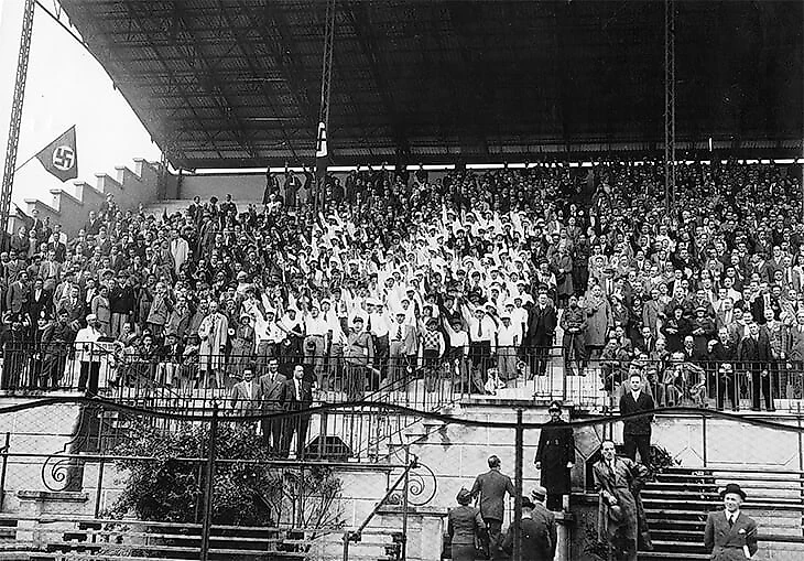 При нацистах под лозунгом «Хороший футболист – хороший солдат» был реформирован чемпионат Германии. У него появилась структура и регламент. Народ стал регулярно заполнять стадионы, хотя до этого немцы даже толком не разбирались в правилах. При этом новая власть выкосила почти всех руководителей клубов еврейского происхождения, а пропаганда внимательно следила за тем, чтобы новости о провалах сборной не попадали в прессу.
