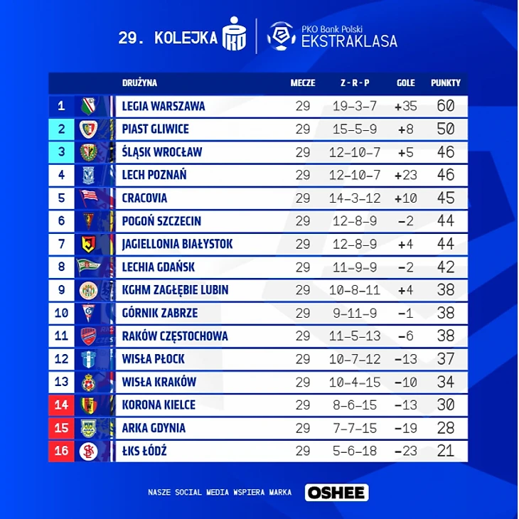 "Легия" разбила гдыньскую "Арку" в пух и прах со счётом 5:1. Таким образом, столичный гранд побил собственноручно установленный рекорд результативности в регулярном сезоне. Об этом вы также можете прочесть в моём обзоре предыдущего тура. Ещё ни одна команда в истории польского чемпионата не забивала 63 мяча по итогам регулярного сезона. А ведь впереди встреча с крепким "Гурником", в которой варшавяне могут ещё больше укрепить своё достижение.